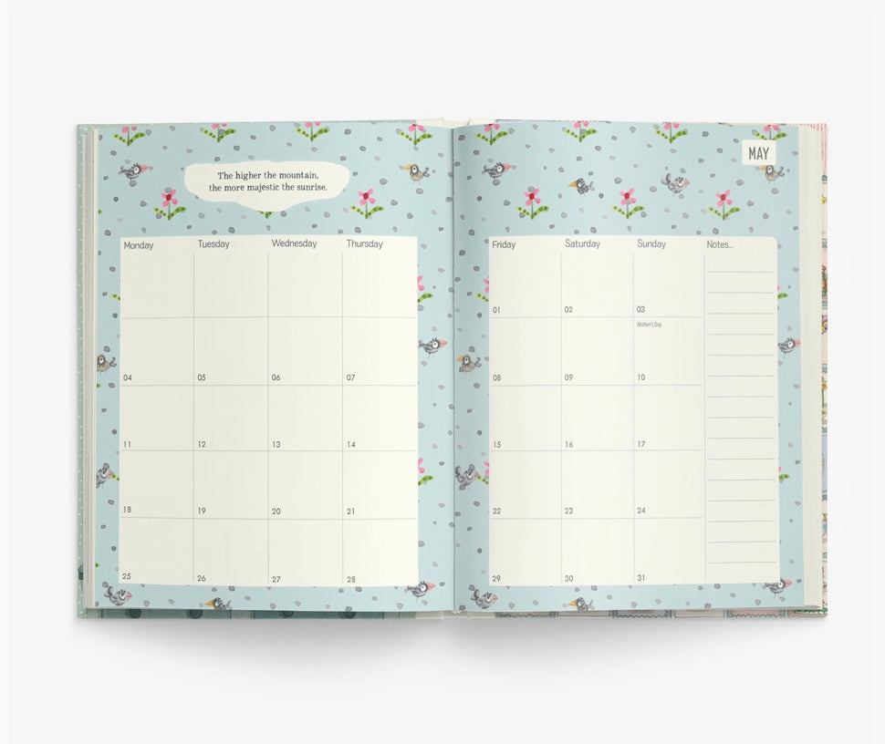 - Generous week-to-a-view spreads feature original artwork, patterns and inspiring quotes for every week of the year.