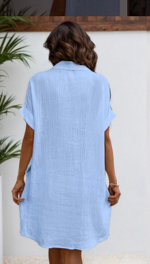 Step into summer with our V-neck Coconut Button Front Top! This versatile top features a button-down design and short sleeves for a breezy and stylish look. With a relaxed fit and a pocket on the side, it offers both comfort and convenience. Made with 100% textured cotton, you'll love the soft and lightweight feel on your skin. Perfect for any occasion, this top will become your go-to favorite!