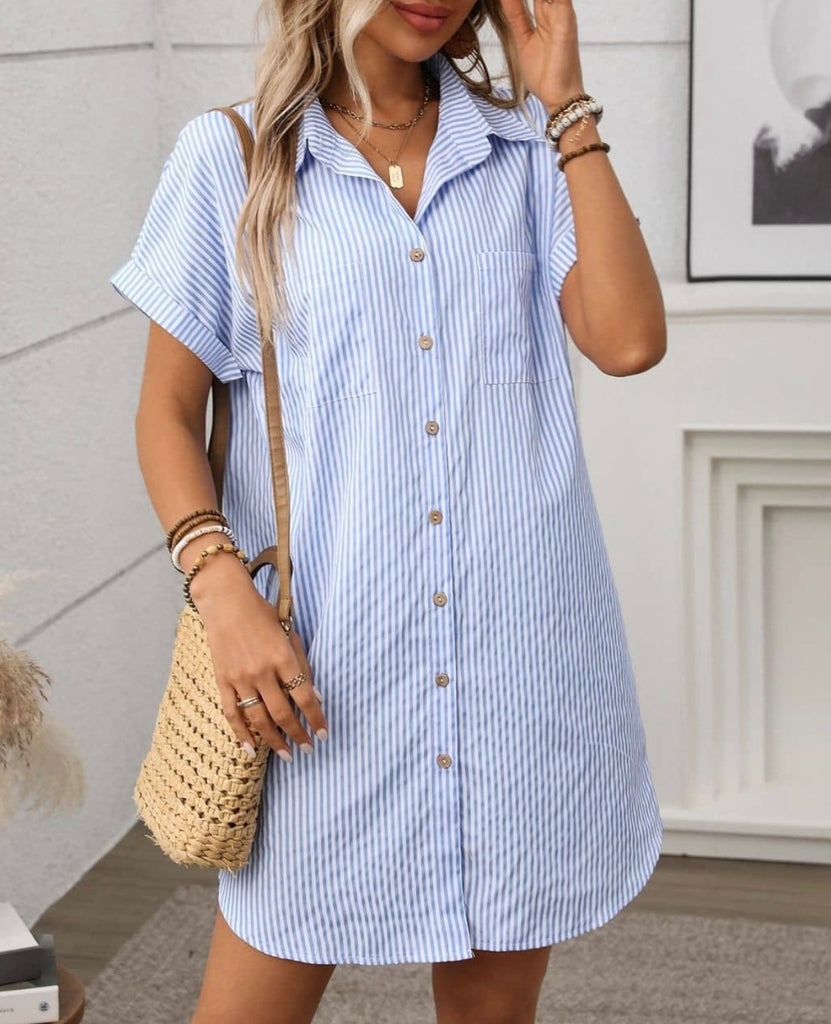 Crafted from a soft and breathable blend of viscose and linen, this Button-up Puff Sleeves Shirt features relaxed fit and striped short sleeves for effortless everyday wear. The button front adds a touch of sophistication. Perfect for any occasion.