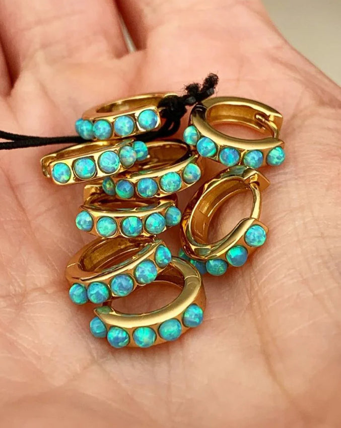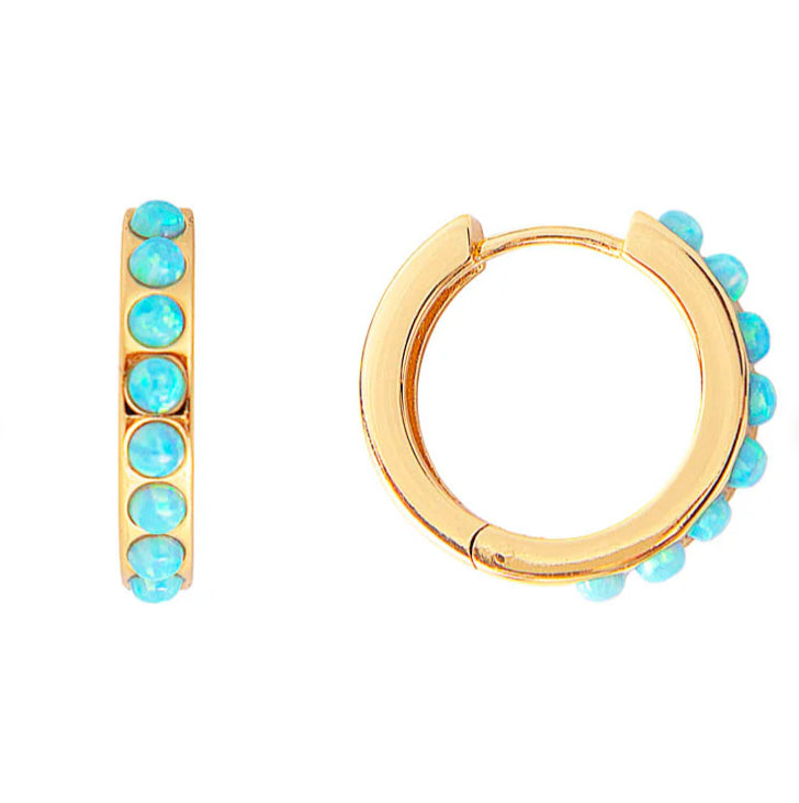 Infused with celestial charm, the Blue Opal Crystal Midi Hoops bring a touch of shimmer to your everyday look. Featuring luminous blue opal crystals set in 18k gold–plated sterling silver, these medium-sized hoops strike the perfect balance between statement and subtle. Lightweight and versatile, they’re designed for effortless styling—whether worn solo or stacked with your favourite huggies and studs.