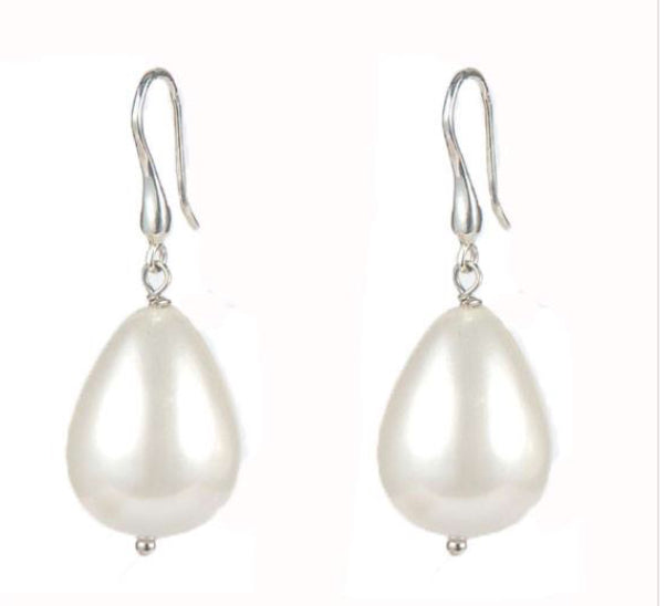 The Irma, white pear shaped, shell pearl earrings are elegant and ooze sophistication.The 13-14mm shell pearls hang 18mm from sterling silver hooks.