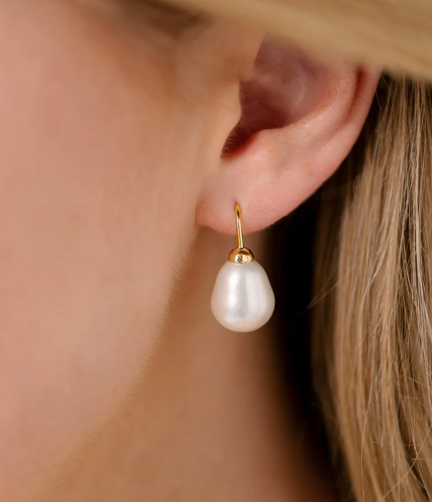 The quintessential baroque-shaped pearl earrings on a gold Hook.