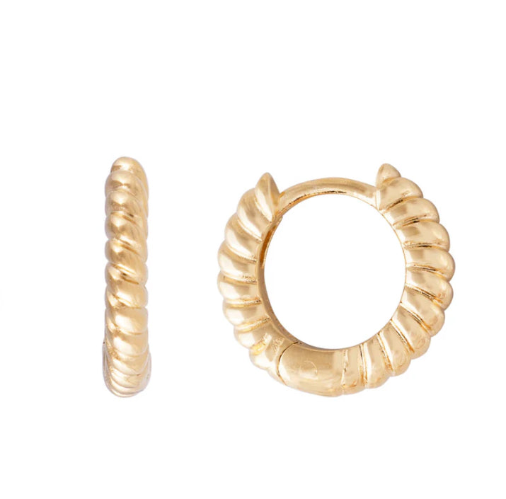 Timeless with a twist, the Vintage Twisted Huggies bring a refined edge to everyday styling. Crafted in high-polish 18k gold-plated finish, these earrings feature a unique rope-like design that nods to vintage glamour while remaining effortlessly modern. Lightweight and snug-fitting, they're perfect for stacking or wearing solo for a subtle yet striking look.
