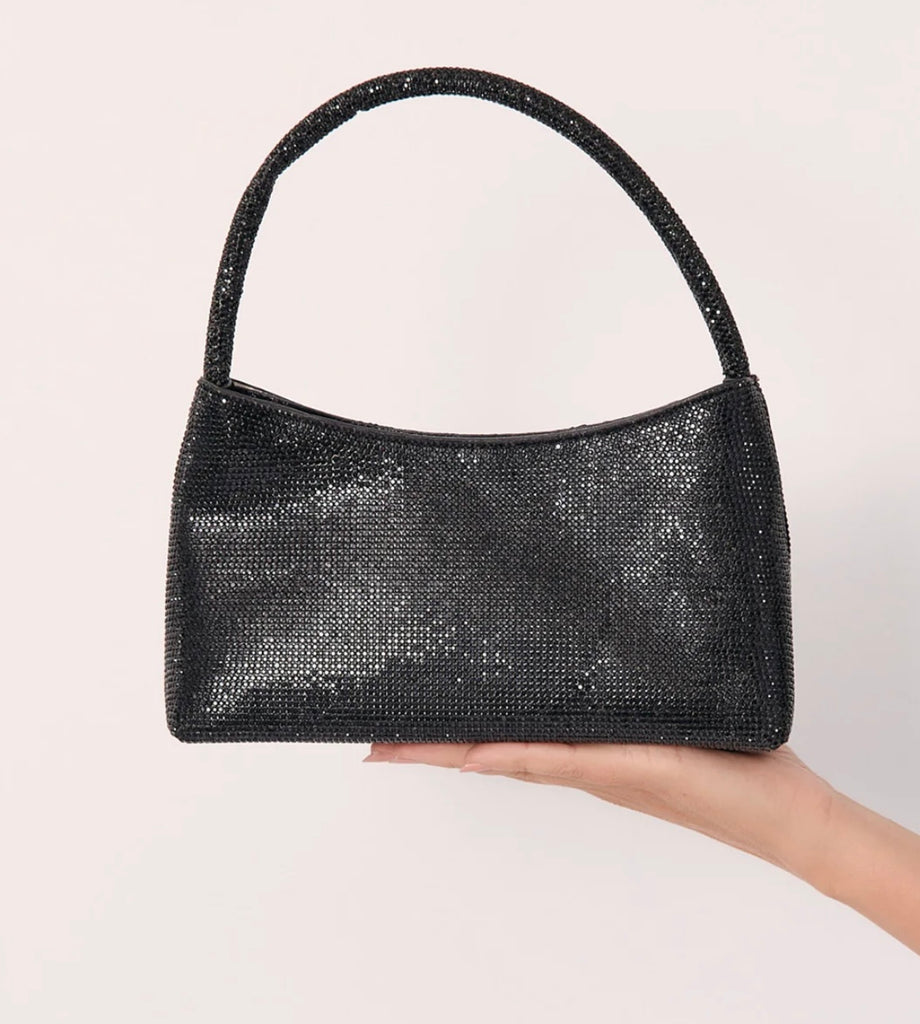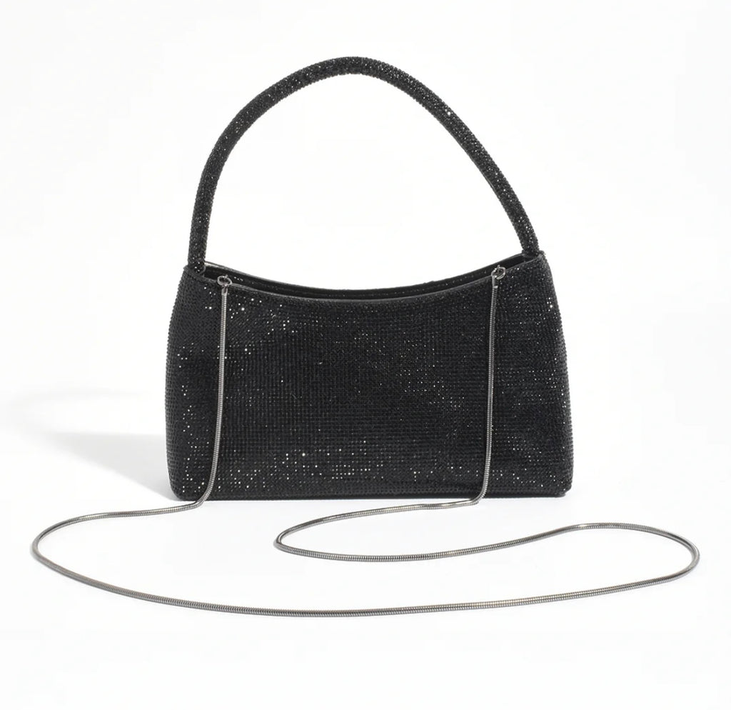 designed for statement events, this bag boasts a secure zip closure and top handle for easy carrying. Made from luxurious Mini Diamante, it also offers the option of a cross-body chain for added versatility. Elevate your style with this timeless accessory.