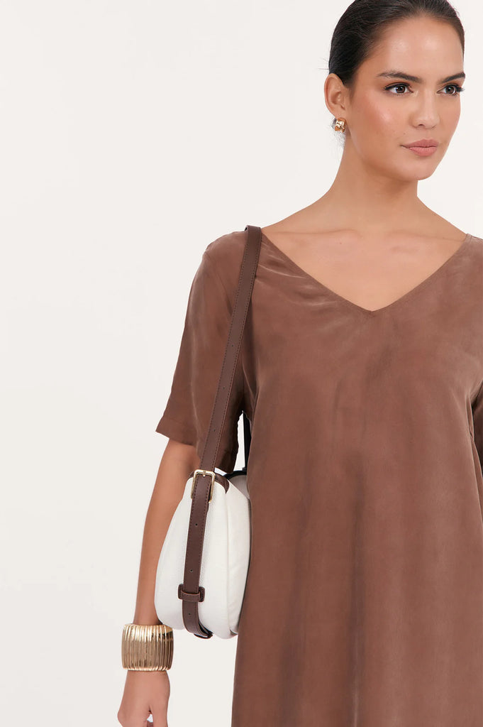 Claudia Saddle Handbag-Cream Chocolate