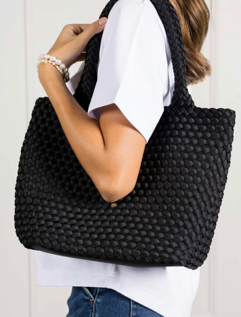 The Deauville Tote is crafted from a waterproof woven neoprene, making her the perfect everyday bag for the woman on the go! Light in weight, this bag is roomy enough to hold your everyday essentials and then some.