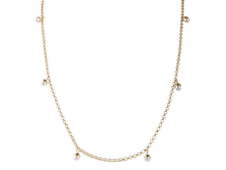 Freshwater pearls on sterling silver 24k Italian gold plate rolo chain.