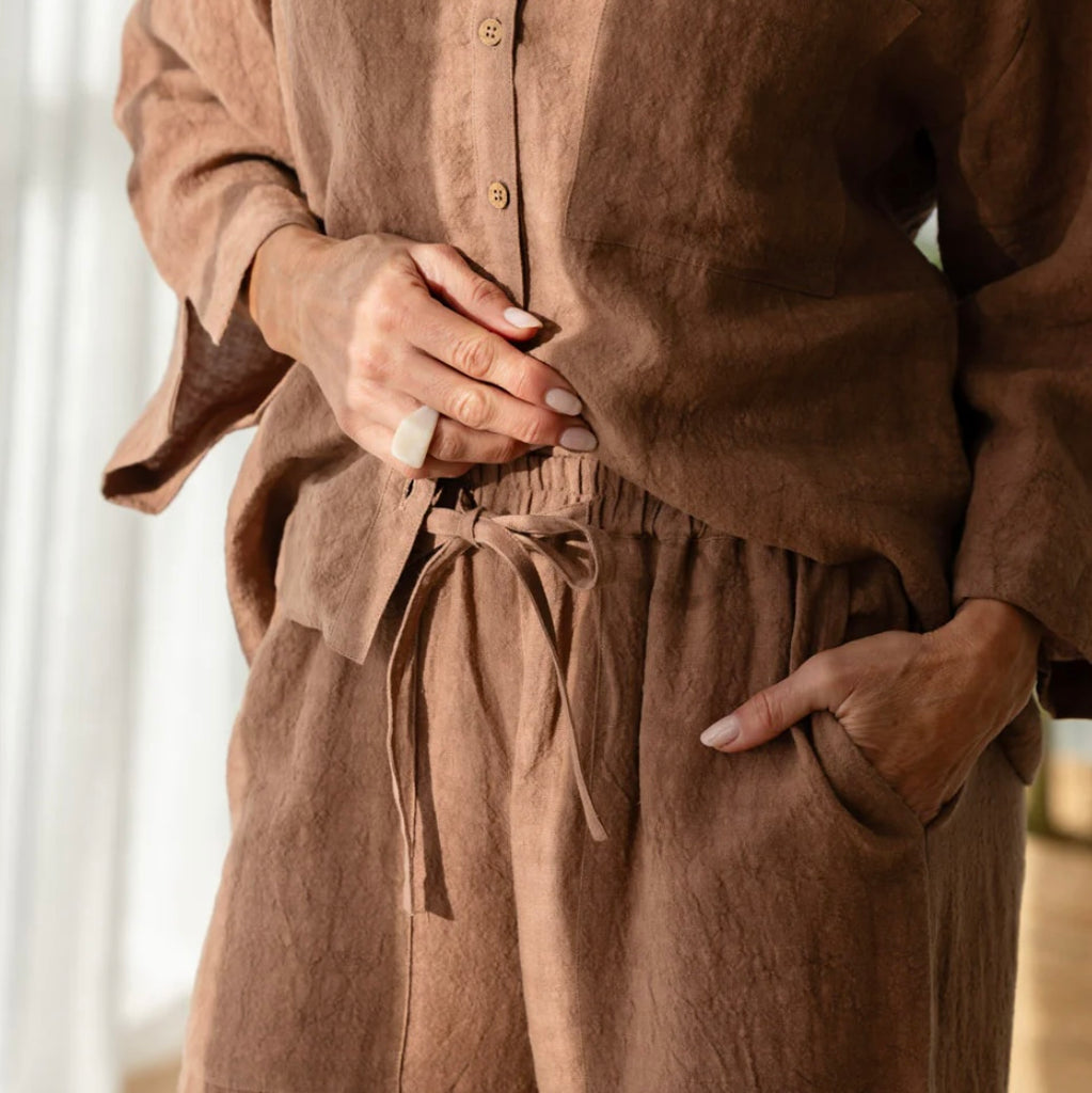 We've reimagined our much loved loungewear with new streamlined, modernised versions of the classics. Elevate the every day with the Wide Leg Linen Pant, a timeless staple designed to effortlessly take you from work to weekend. Featuring a wide drawstring waist band, front pockets and flattering slouch through the leg, mix and match these linen pants with our Fundamental Linen Shirt.