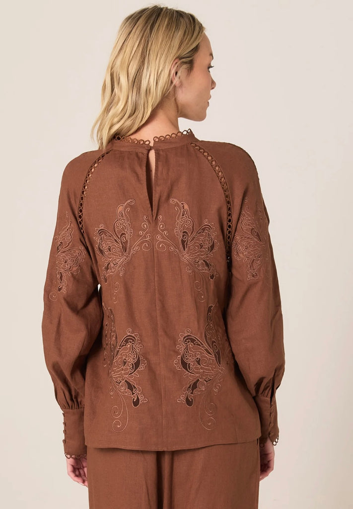 Aven Embroidered Blouse -Cinnamon