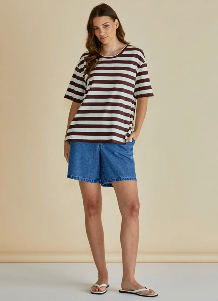 Relax Boxy Tee - Brown Stripe